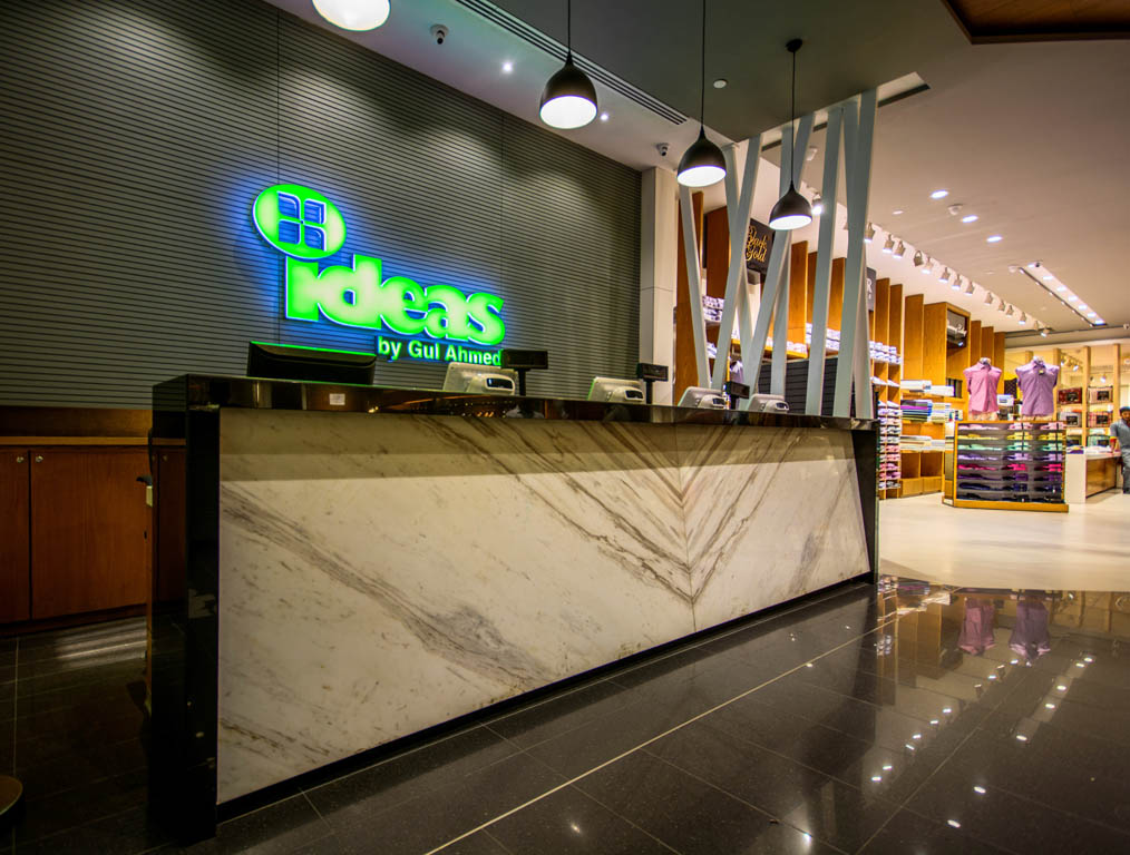 Name of Project : Ideas by Gul AhmedLocation : Dolmen Mall Clifton, KarachiArea : 4500 sq.ftDate of Completion : 2014